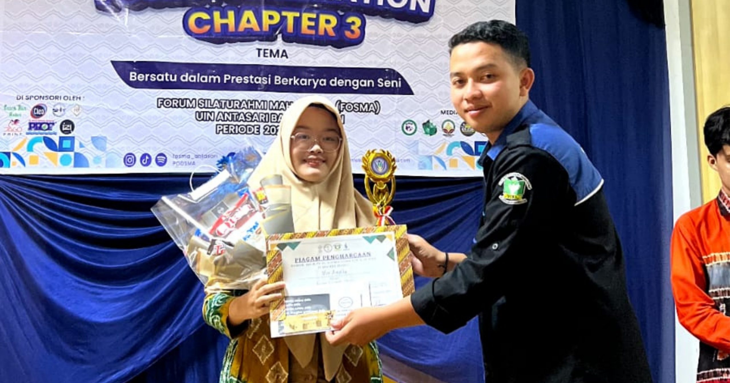 Nor Amelia, mahasiswa UIN Antasari Banjarmasin, berhasil meraih juara pertama dalam lomba orasi pada acara Force Chapter III yang diselenggarakan oleh Forum Studi Mahasiswa (FOSMA) pada tanggal 8-9 September 2024. Keberhasilan ini menambah daftar prestasi gemilang yang diraih Amelia di dunia orasi dan komunikasi.